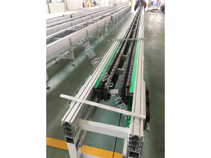 流水線運轉(zhuǎn)有:輸送機、皮帶輸送機、鏈板輸送機、爬坡輸送機以及伸縮輸送機等。